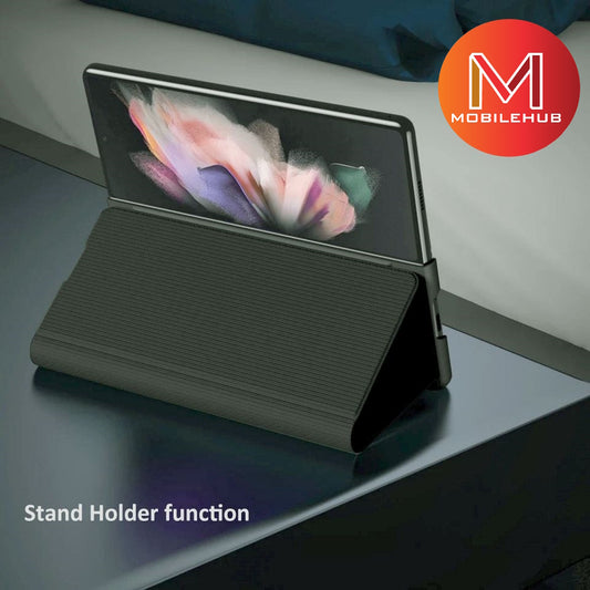 Samsung ZFold 3 Leather Flip Cover Case (Black) Z Fold 3