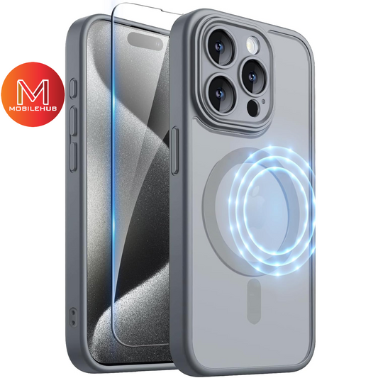 iPhone 14 / 15 / 15 Plus / 15 Pro / 15Pro Max Clear Matte Mag Safe Case with Lens Protector