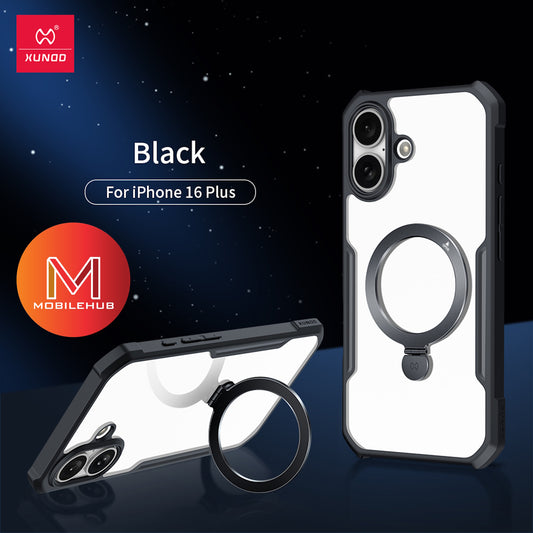 iPhone 16 / 16 Plus / 16 Pro / 16 Pro Max XUNDD Beetle Magnetic Shockproof Case with Ring Stand (Black)