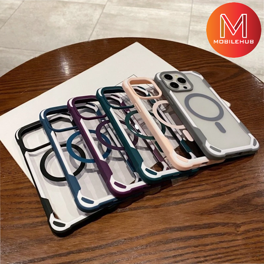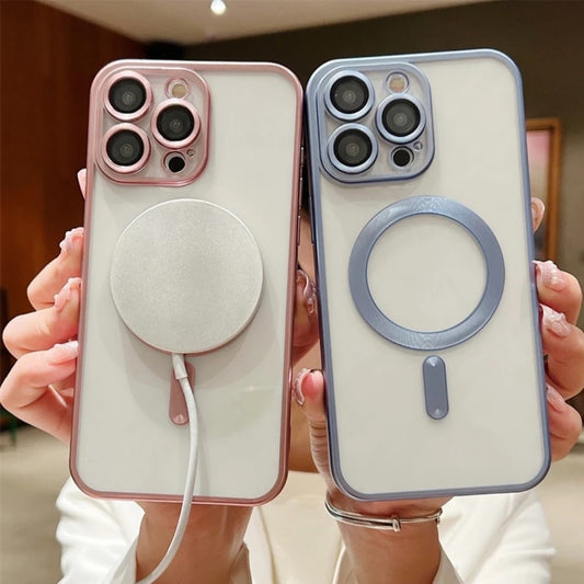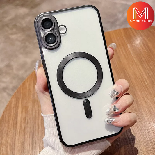 iPhone 16 / 16 Plus / 16 Pro / 16 Pro Max Metallic Titanium Series Clear Magsafe Case