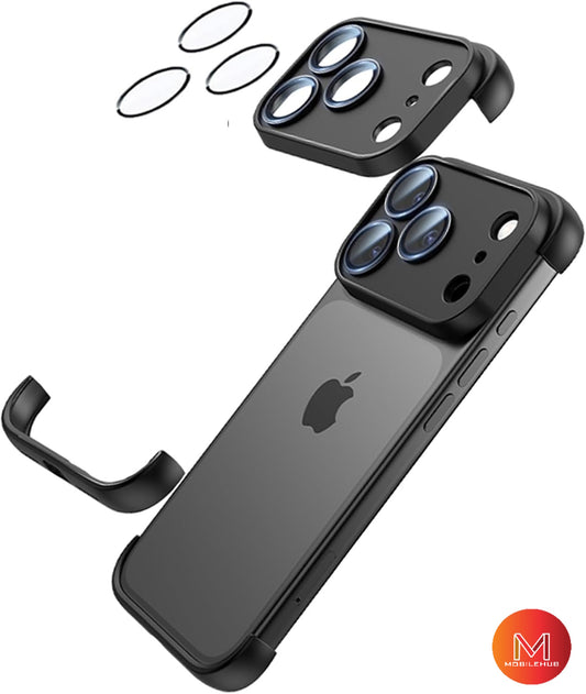 iPhone 17 / 17 Pro / 17 Pro Max Frameless and Backless Bumper Case with Camera Lens Protector