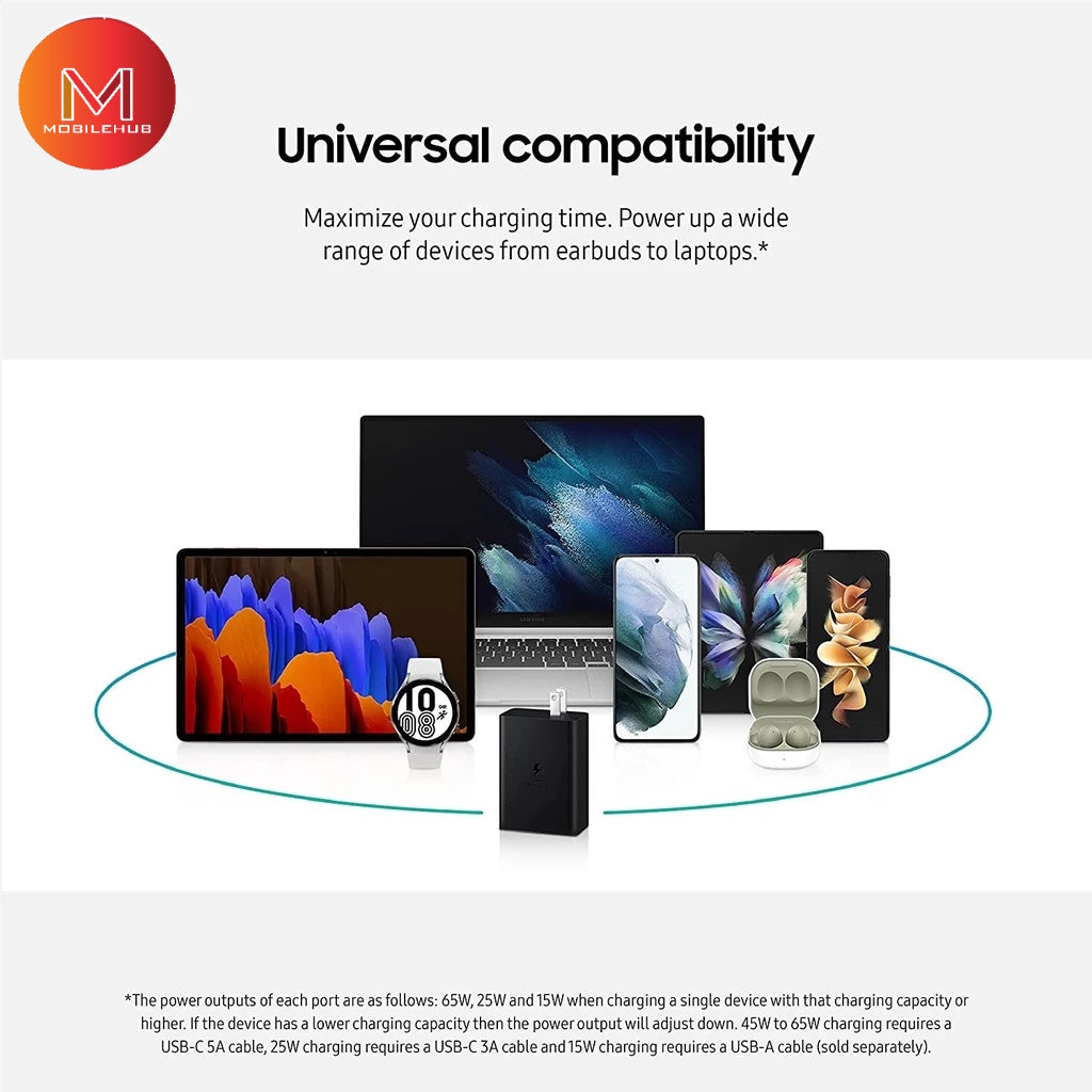 3 in 1 Power Adapter Trio Charger USB- C x 2 Ports, USB- A Port FREE Type-C to Type-C Cable (9w) (65w)