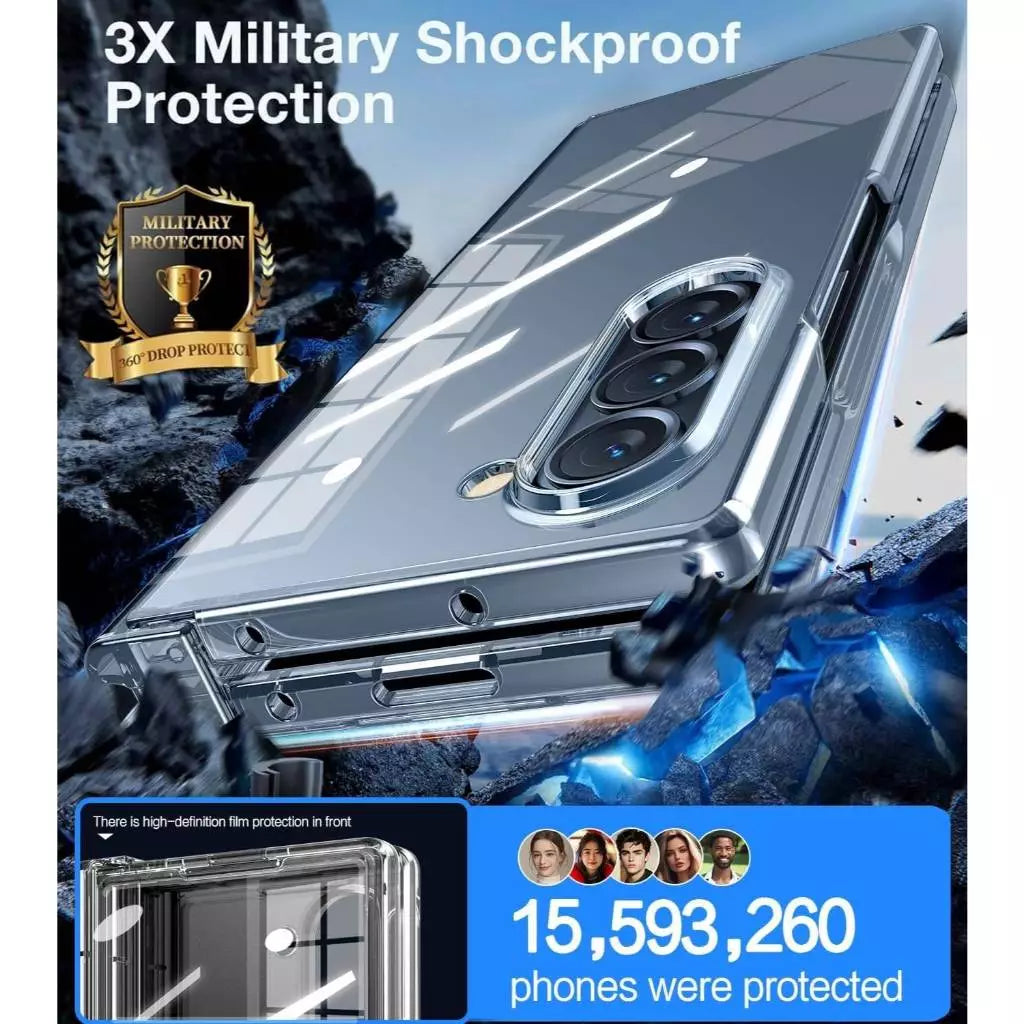 Samsung ZFold 6 Ultra Clear Shockproof Case with Hinge Cover & Pen Holder Anti-Fingerprint Z Fold 6